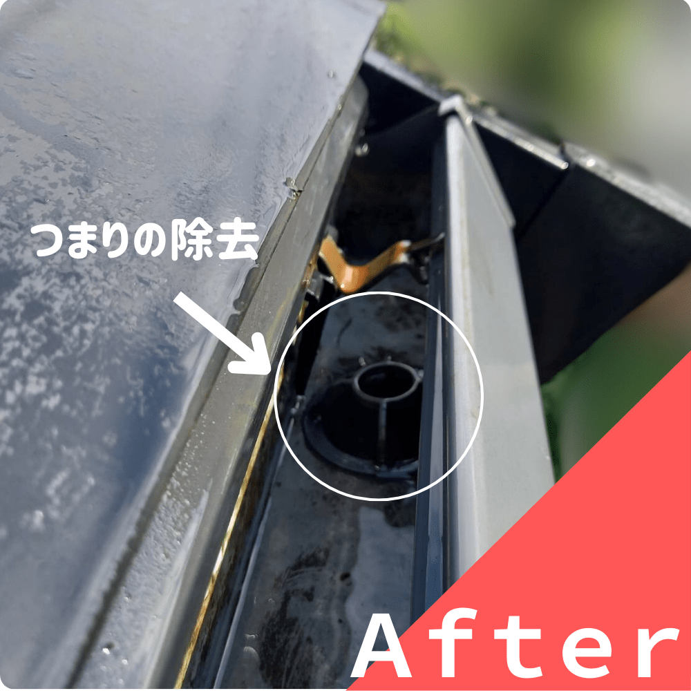 しかし、晴れている日でも雨樋からポタポタしずくが垂れているのを発見。原因は【雨樋のつまり】だろうとなりました。