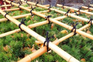 雪囲いは、縄や竹・木材や網ネットを使ってさまざな方法があります。