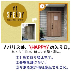 玄関はお家の顔です、明るくキレイに風通しを良くしておきたいですよね(^^)/三協アルミのノバリスなら外壁を壊さずに工事が出来て、工事はたったの1日で終了です。明るく、風通しの良い玄関にリフォームしませんか?  外壁を壊 […]