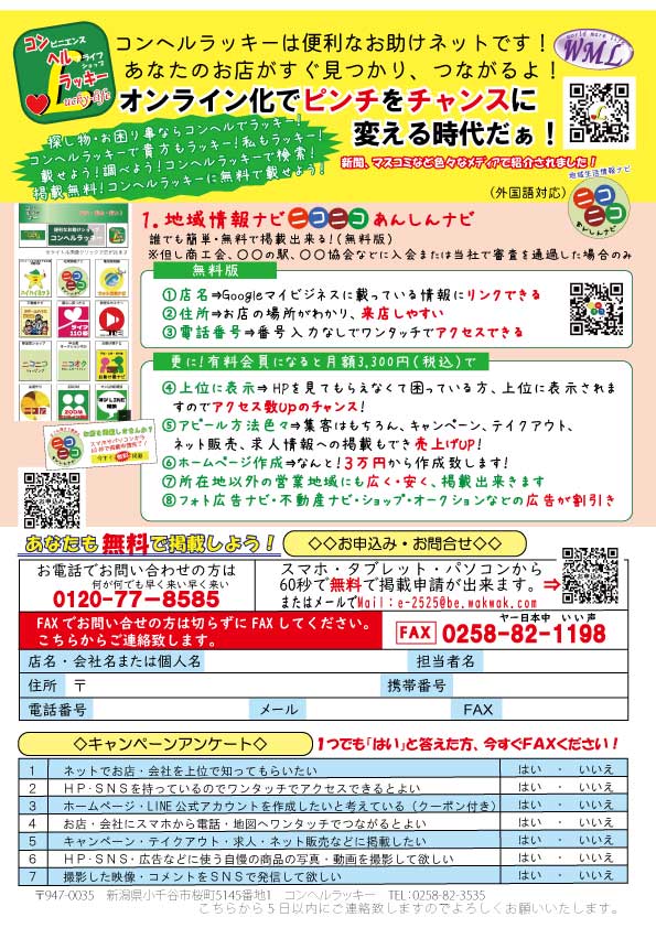 お得な情報や求人を無料でHPに掲載出来る。